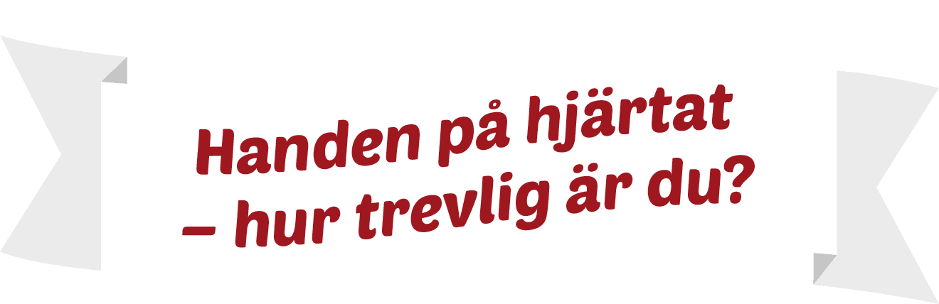 De flesta av oss går nog omkring och uppfattar oss själva som relativt hyggliga och trevliga människor. Men hur vet man säkert att man är en trevlig typ? Vårt test ger dig svart på vitt att du är en trevlig person om du är det, eller tar dig bryskt ur villfarelsen om det visar sig att du inte är det.